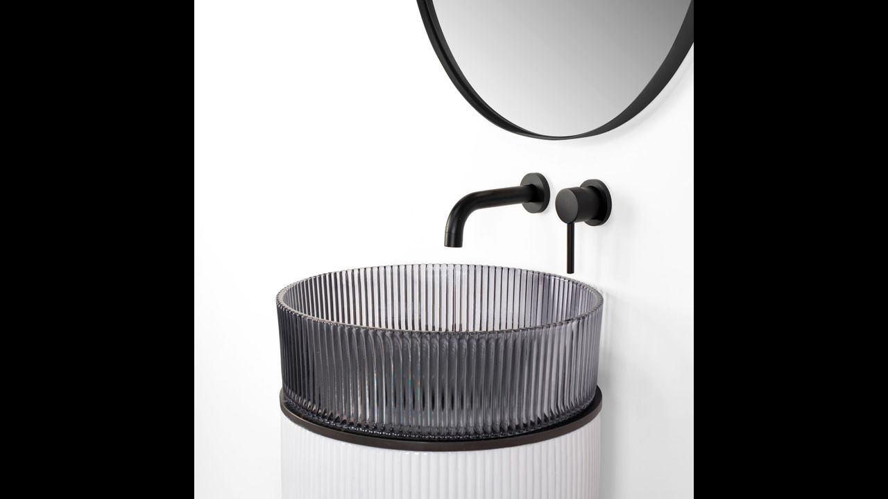 Современный и минималистичный пьедестал в комплекте со стеклянным умывальником идеально впишется в любую ванную комнату. Изготовленный из высококачественного минерального акрила, он имеет прочную конструкцию, которая впечатляет своей элегантностью и неповторимым стилем. Поверхность как пьедестала, так и умывальника рифленая, что создает интересный и цельный визуальный эффект.