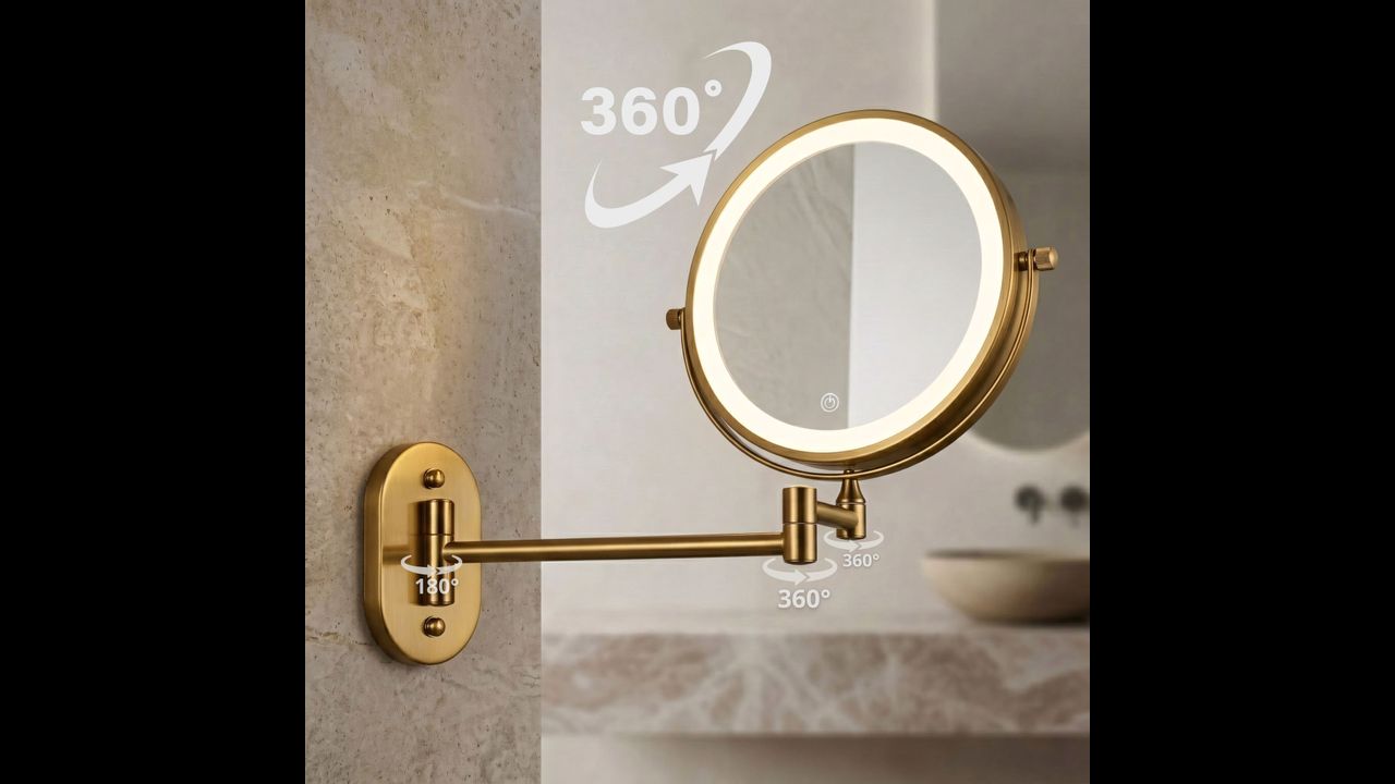 Настенное косметическое зеркало с LED-подсветкой — практичное и элегантное решение для ванной комнаты, гардеробной или домашнего туалетного столика. Двусторонняя модель на складном кронштейне незаменима для ежедневного макияжа, бритья и точного ухода, сочетая современный дизайн и высокую функциональность.